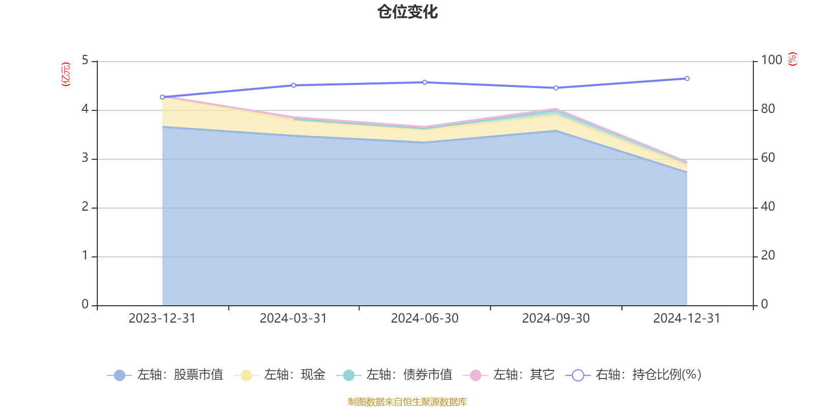 据定期报告数据统计,成立以来平均股票仓位为89.69%,同类平均为84.96%。2024年末基金达到92.85%的最高仓位,2023年末最低,为85.22%。